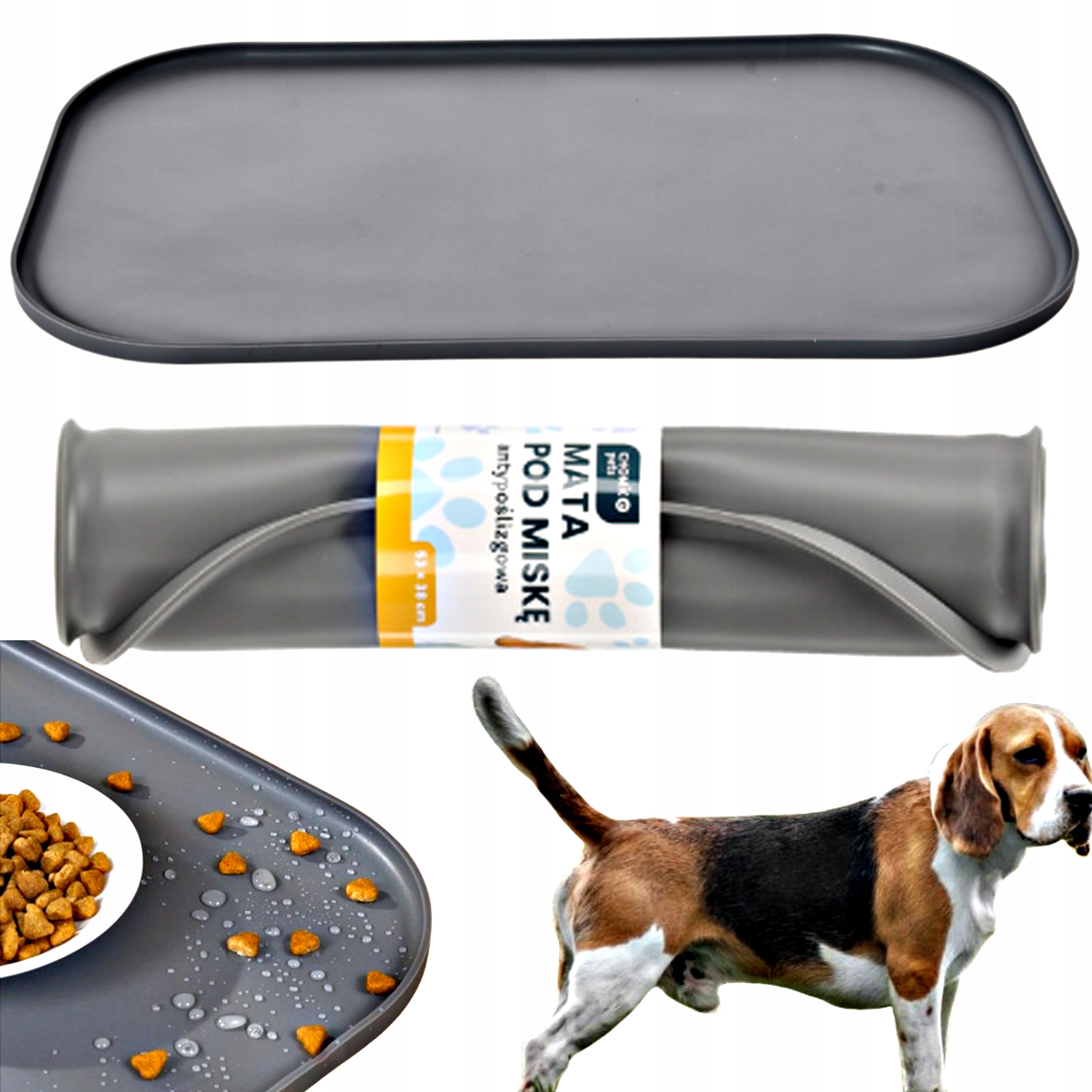 - Duży rozmiar: 44 x 28 cm – idealna pod dwie miski: na karmę i wodę