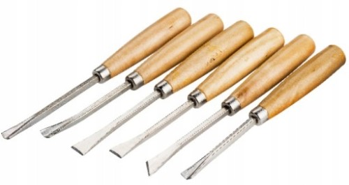 Zestaw dłut rzeźbiarskich, modelarskich do drewna z drewnianą rękojeścią.