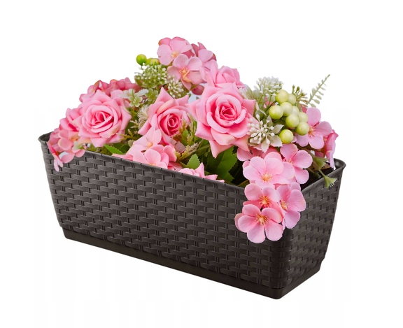 Doniczka balkonowa z tej kolekcji świetnie sprawdzi się w przestrzeniach ogrodowych i na balkonach.