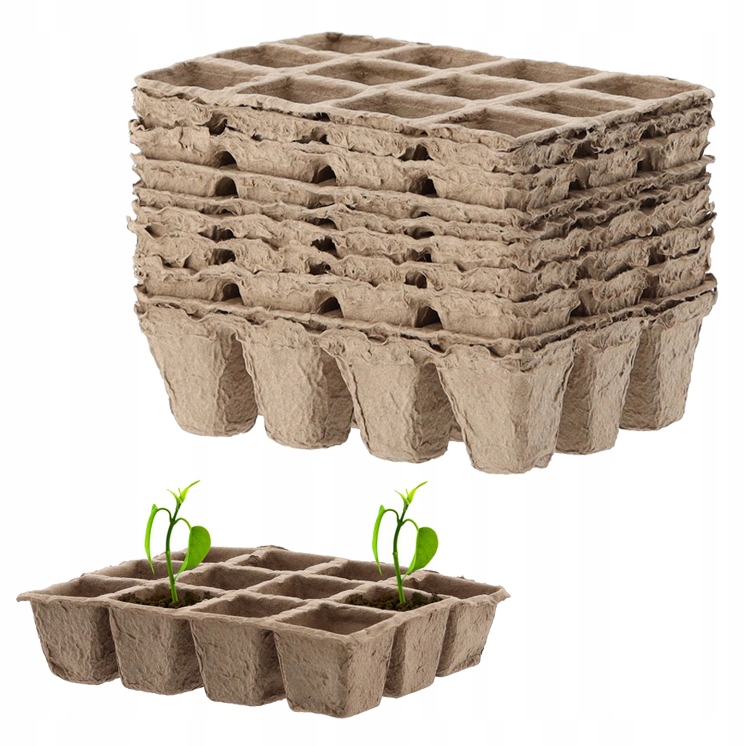 Zestaw zawiera 10 paletek - każda z nich posiada 12 komór. Paletki torfowwe wykonano z wysokiej jakości długowłóknistego sterylnego torfu o dużej pojemności wodnej, wzbogaconego o niezbędne dla wzrostu rozsad makro i mikroelementy, pH 6.
