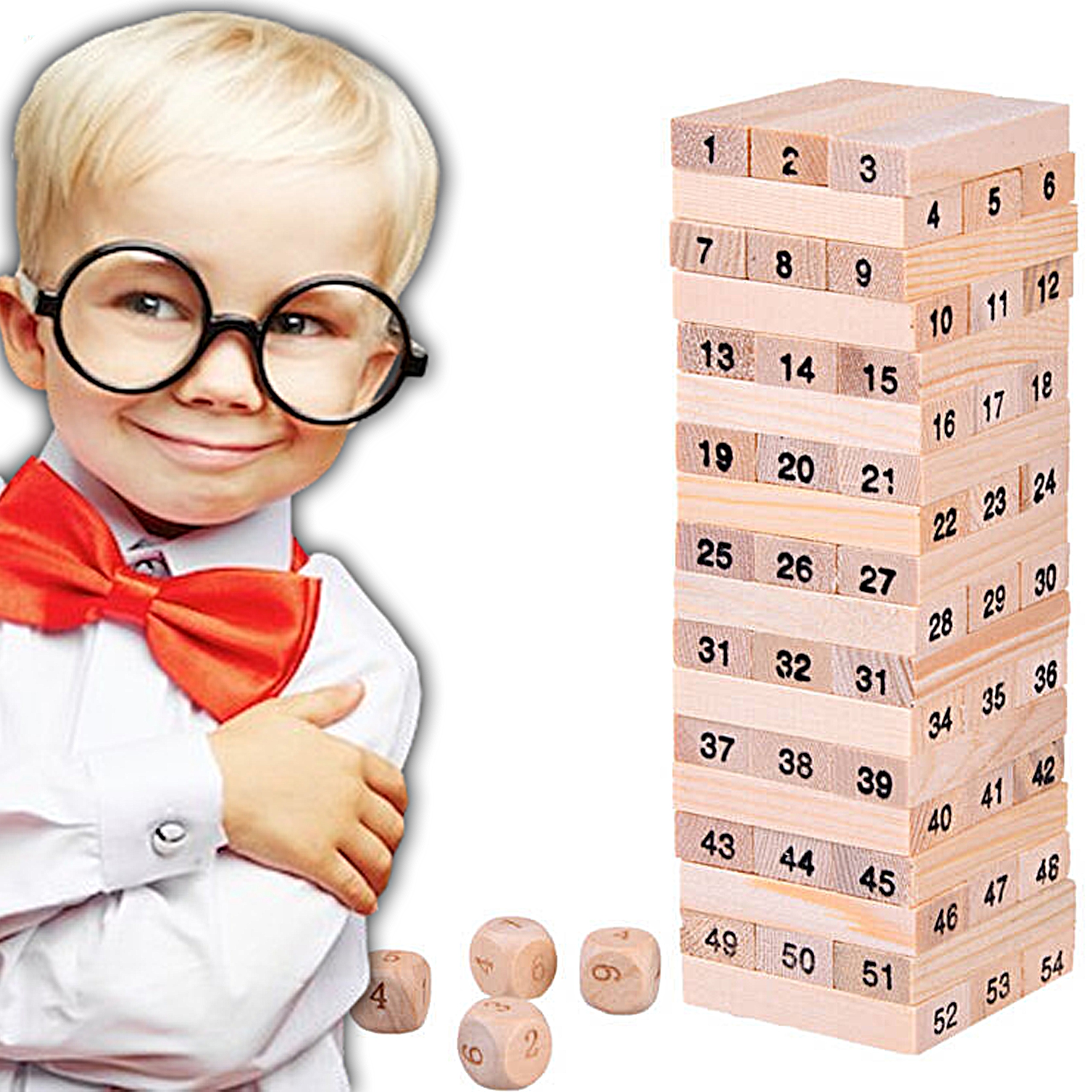 DREWNIANA CHWIEJĄCA SIĘ WIEŻA GRA ZRĘCZNOŚCIOWA KLOCKI 54 DREWNIANE KLOCKI