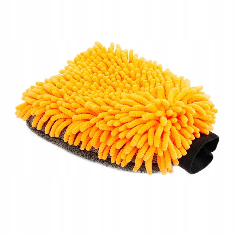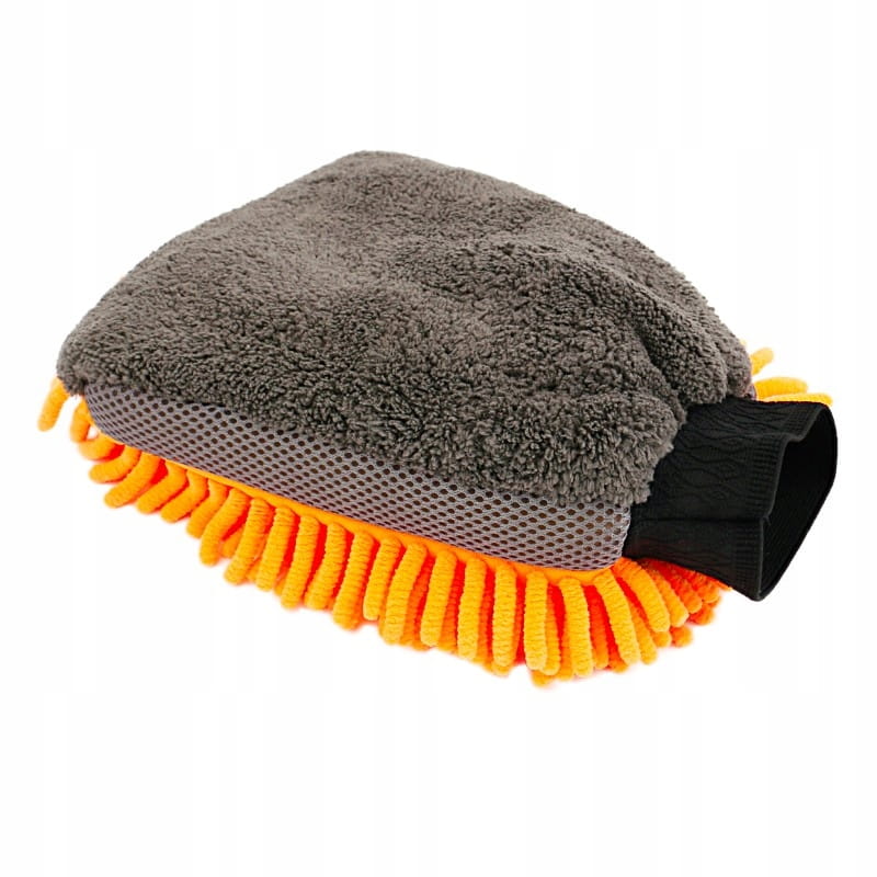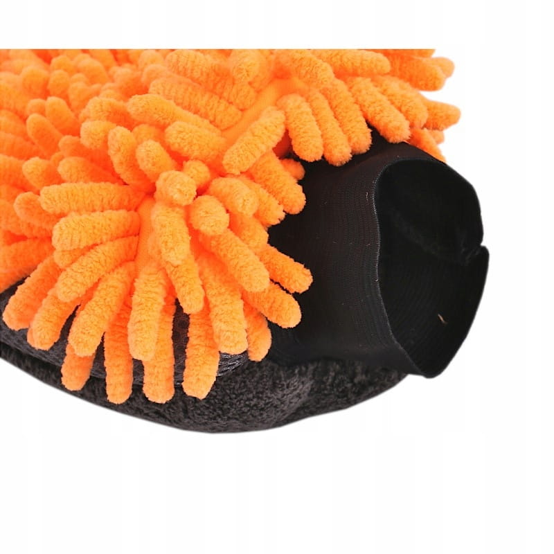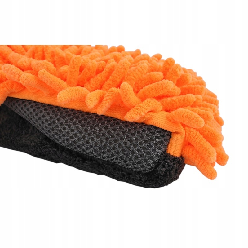 Duża rękawica do mycia samochodu z mikrofibrą. Z jednej strony frędzle szenilowe, bardzo dobrze zbierające wodę i zabrudzenia również z trudno dostępnych miejsc. Z drugiej strony mięsisty, miękki splot o prostych włóknach do polerowania. Dodatkowe boczne wstawki z siatki do usuwania resztek owadów z lakieru. Szeroki ściągacz zapobiega zsuwaniu się rękawicy z ręki. Wewnętrzna warstwa wodoodporna chroni ręce przed detergentami. Delikatna dla lakieru.