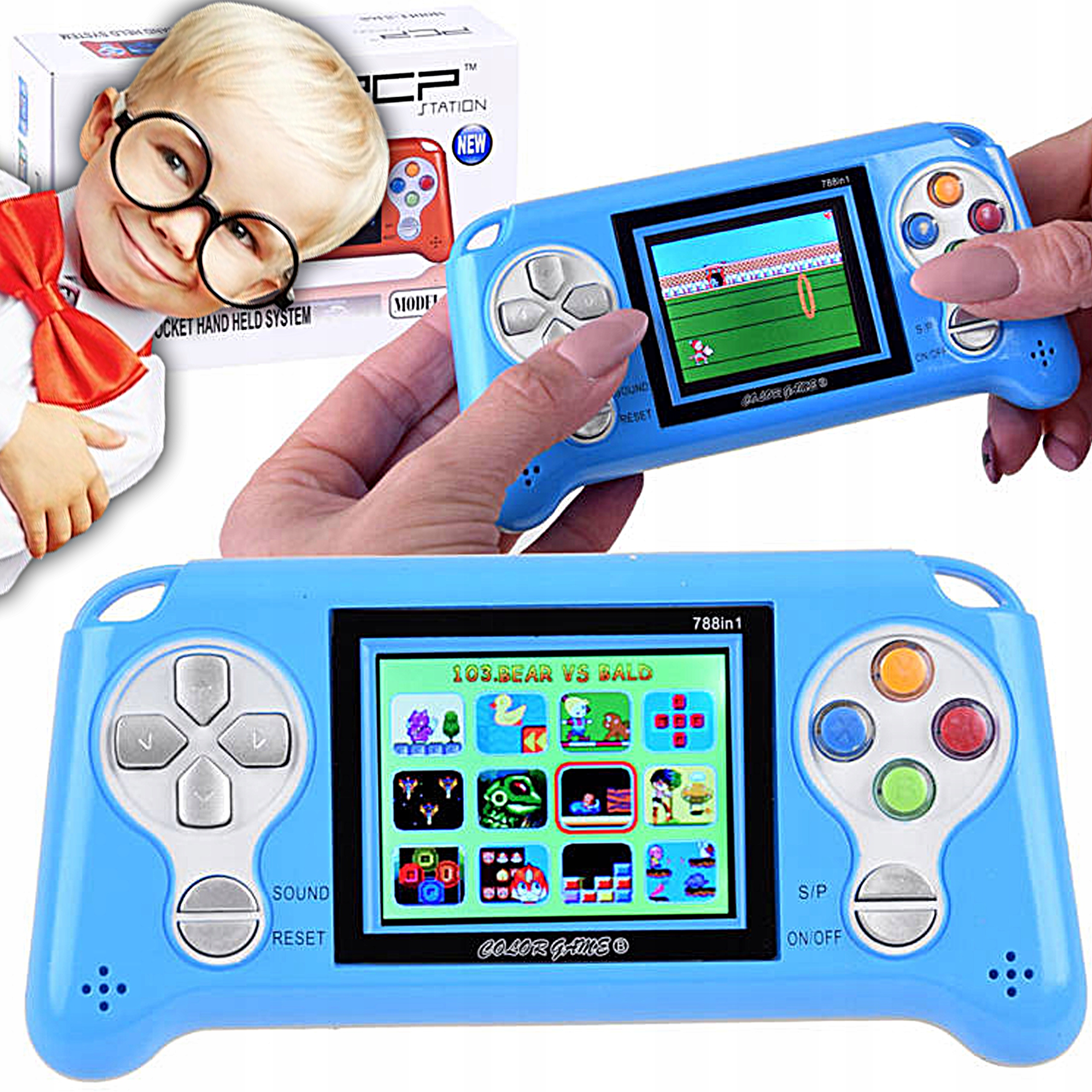 Urządzenie zachwyca nowoczesnym designem oraz przejrzystym, kolorowym ekranem LCD, który oferuje wyraźny obraz, płynną grafikę i żywe barwy. Ergonomiczne rozmieszczenie przycisków gwarantuje komfort i precyzję podczas rozgrywki, a wbudowany głośnik z regulacją głośności zapewnia doskonałe efekty dźwiękowe.