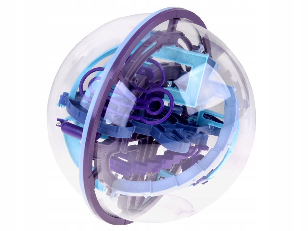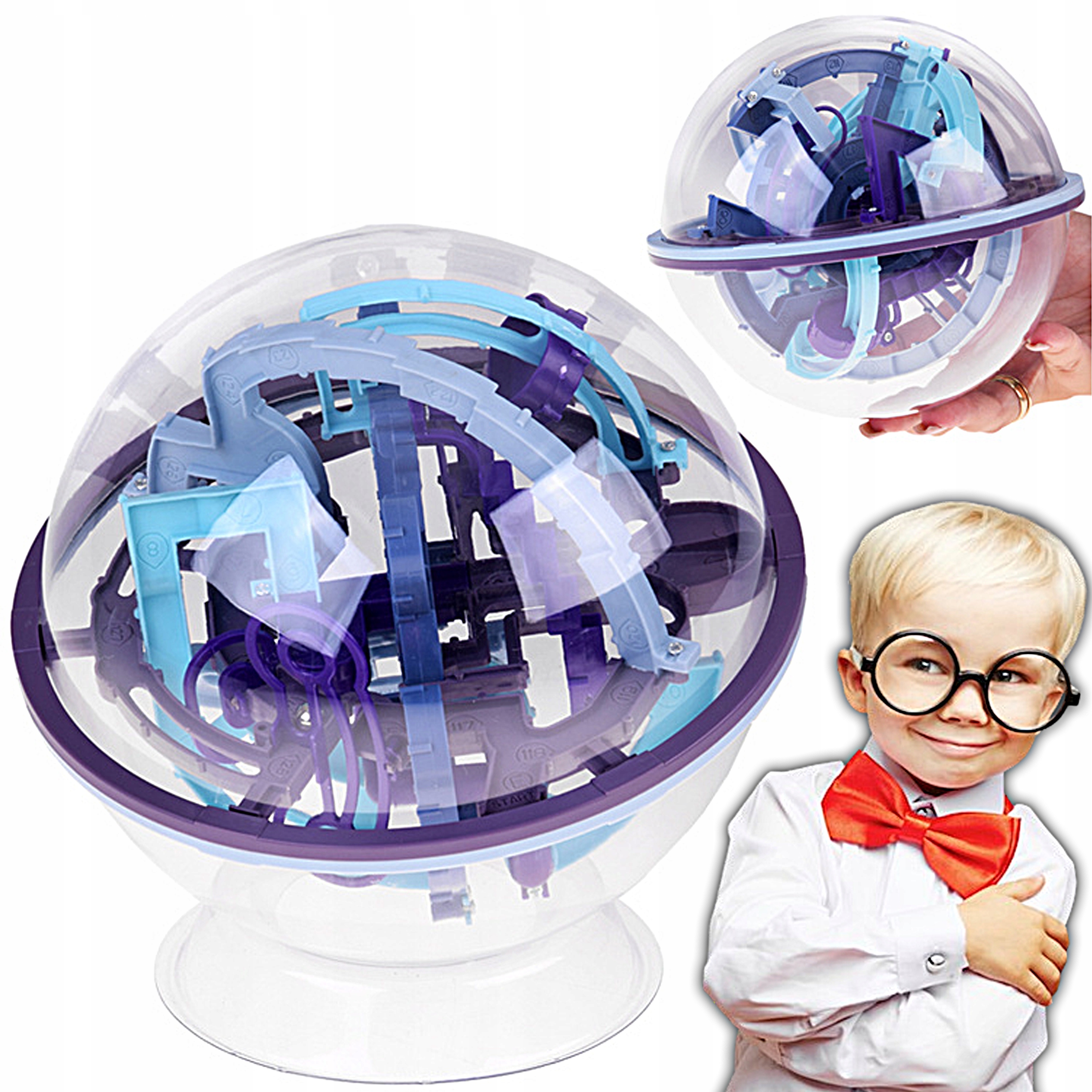 Duża kula z ukrytym wewnątrz trójwymiarowym labiryntem to angażująca zabawka, która potrafi wciągnąć na długie godziny. W przezroczystej kuli znajduje się rozbudowany tor pełen mostów, zakrętów, przeszkód i ramp, tworzących przestrzenny labirynt o zróżnicowanym poziomie trudności.