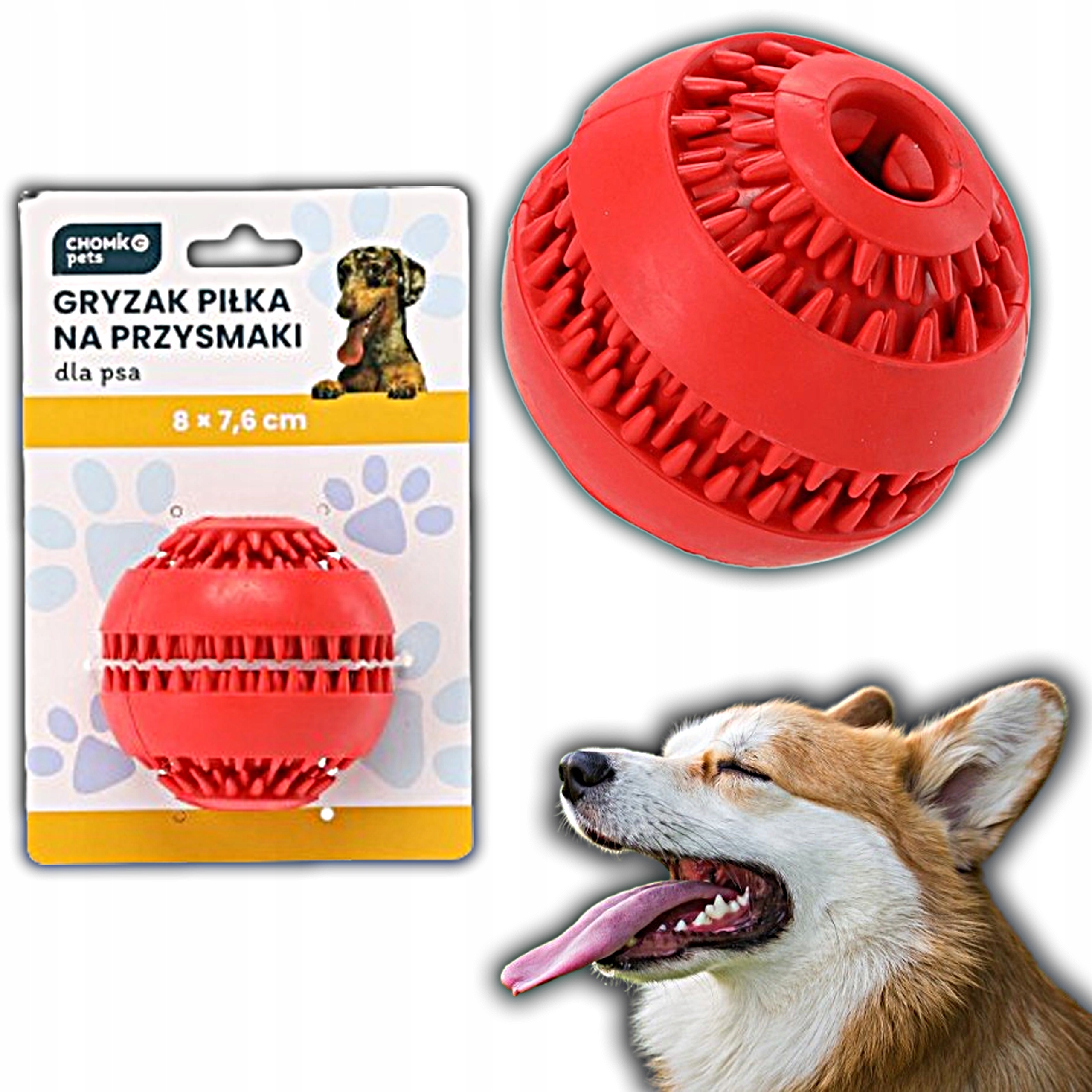 GRYZAK ZABAWKA DLA PSA NA PRZYSMAKI SMACZKI KARME PIŁKA 8 X 7.6 CM