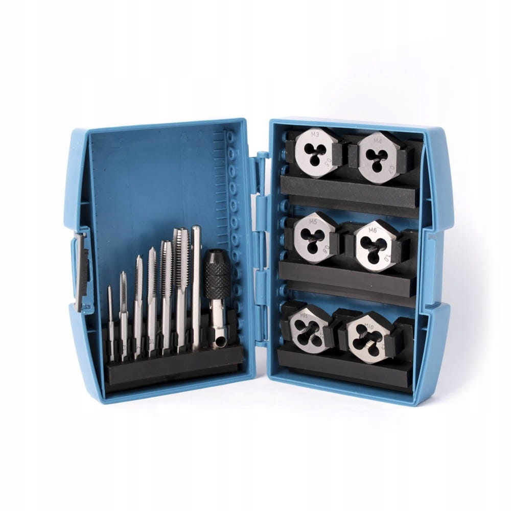 - Zawiera 13 elementów, w tym gwintowniki i narzynki o różnych rozmiarach