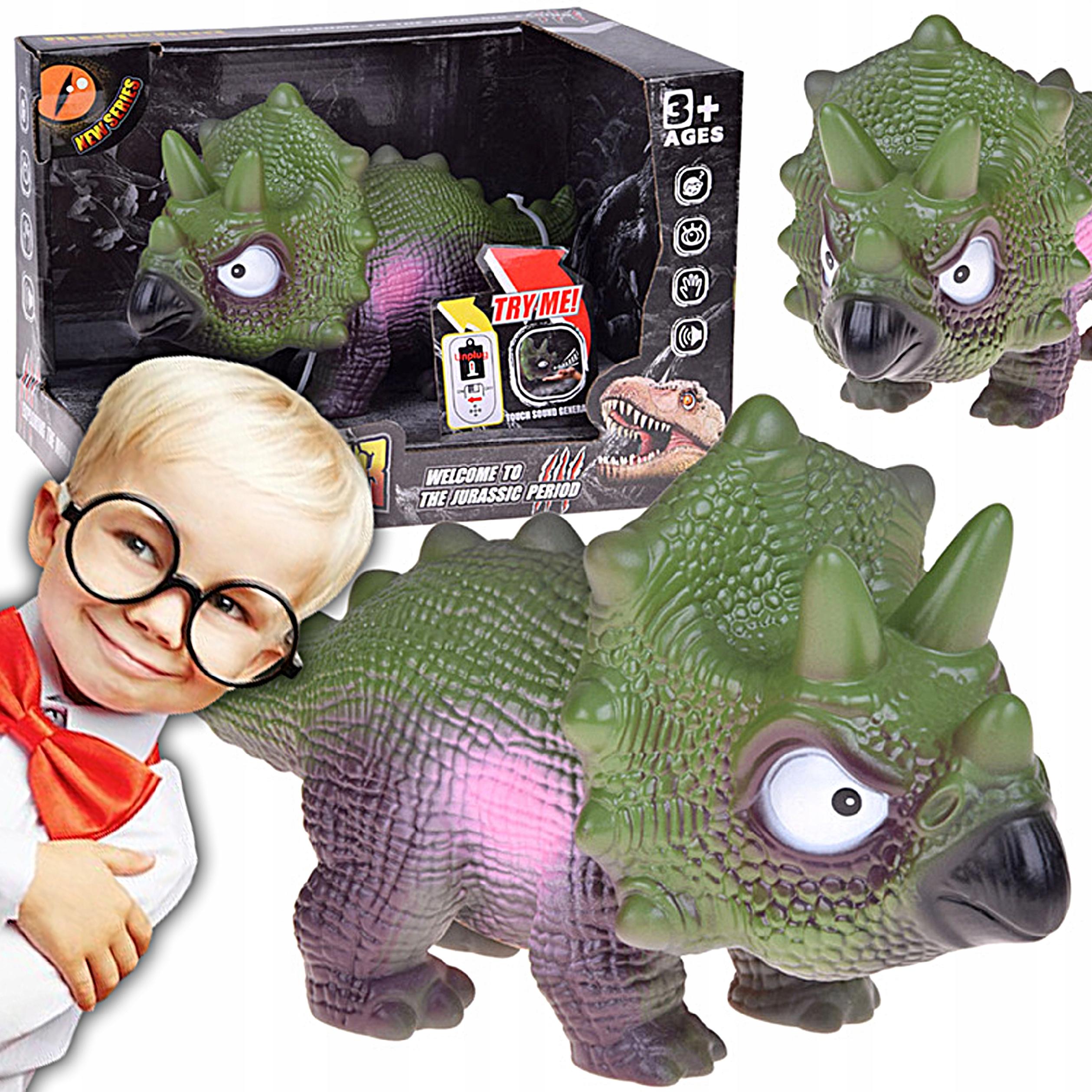 INTERAKTYWNY GUMOWY DINOZAUR TRICERATOPS FIGURKA Z DŹWIĘKIEM RYCZĄCA