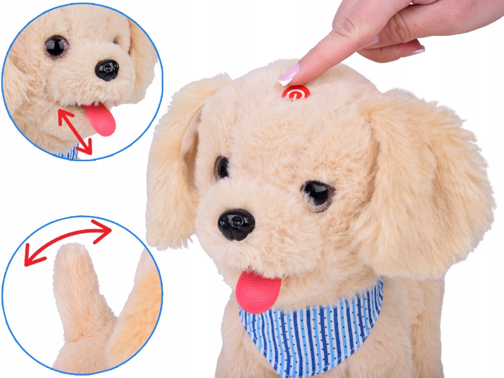 - Urocze funkcje: Chodzi, szczeka, skomle, merda ogonkiem, a nawet "liże". Idealny do tulenia i głaskania