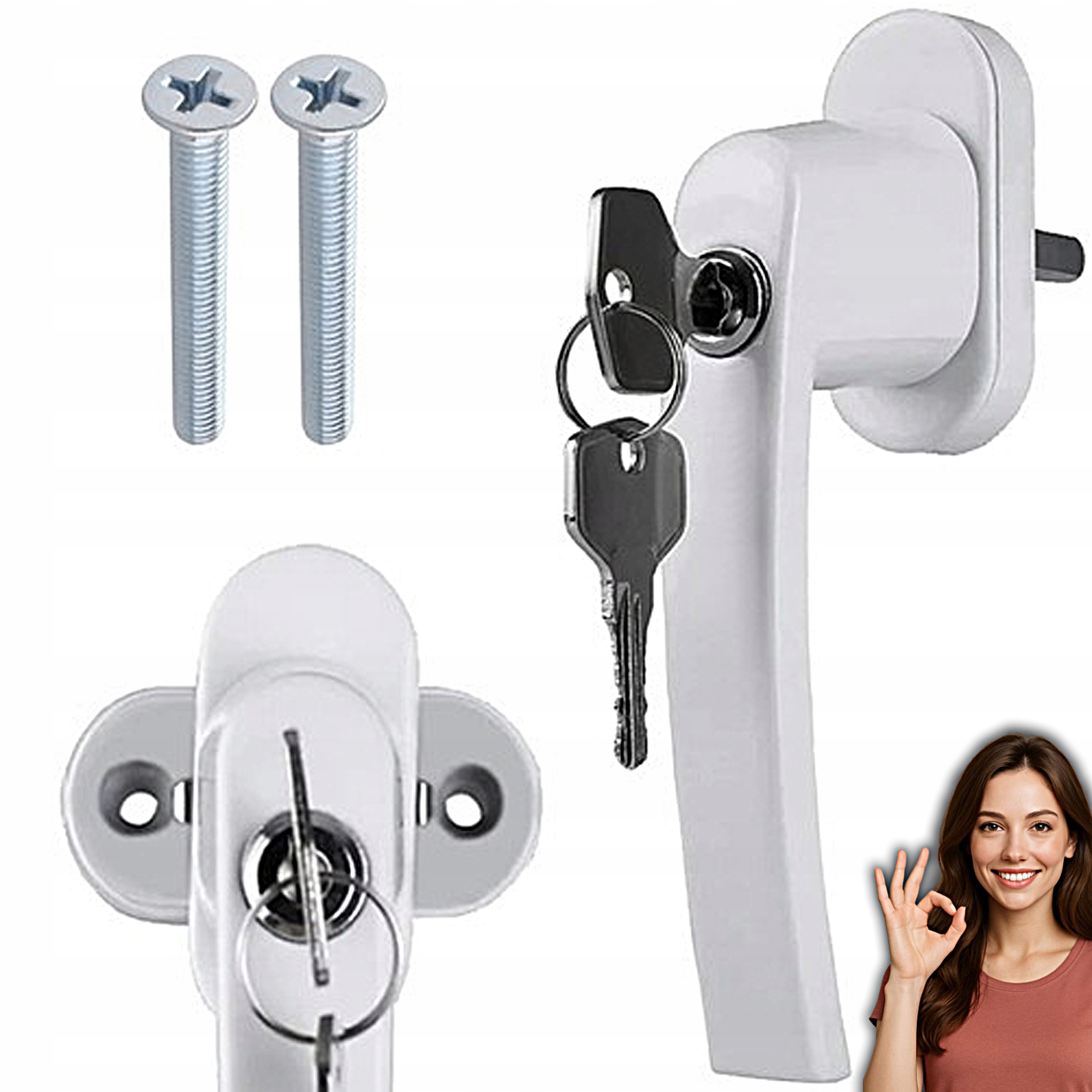 KLAMKA BIAŁA DO OKNA OKIENNA Z KLUCZYKIEM ZAMKIEM ANTYWŁAMANIOWA + ŚRUBY