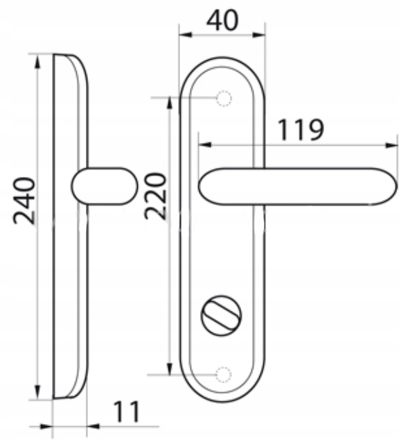 - Rodzaj: klamka drzwiowa z blokadą WC (rozstaw 72 mm)