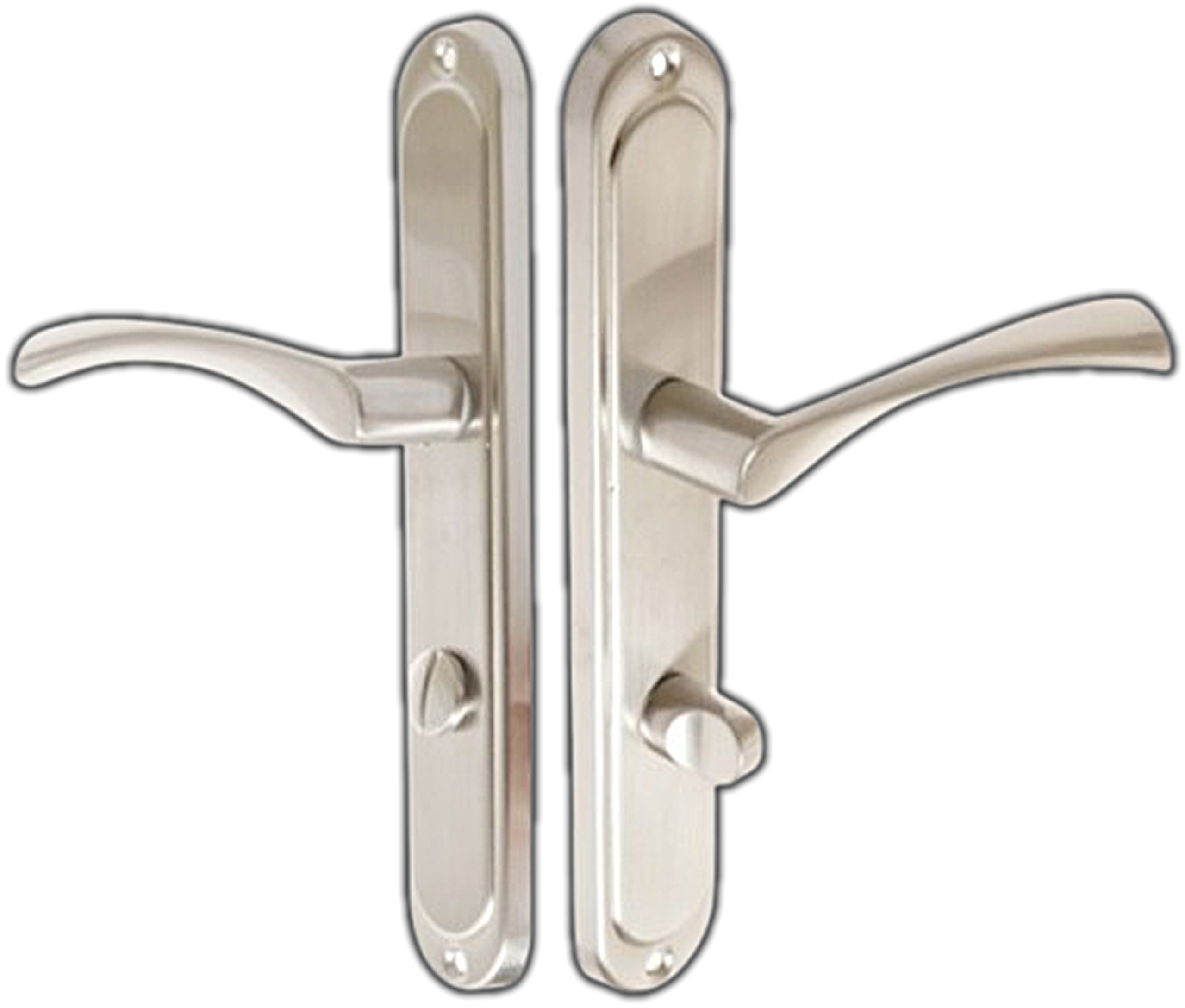 Klamka Salix 72 WC w nowoczesnym wykończeniu nikiel satyna to solidny i elegancki wybór do drzwi wewnętrznych, szczególnie do łazienek i toalet. Wyposażona w szyld podłużny z blokadą WC, zapewnia prywatność i komfort użytkowania w domach, mieszkaniach czy obiektach komercyjnych.