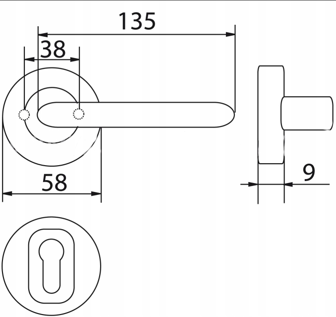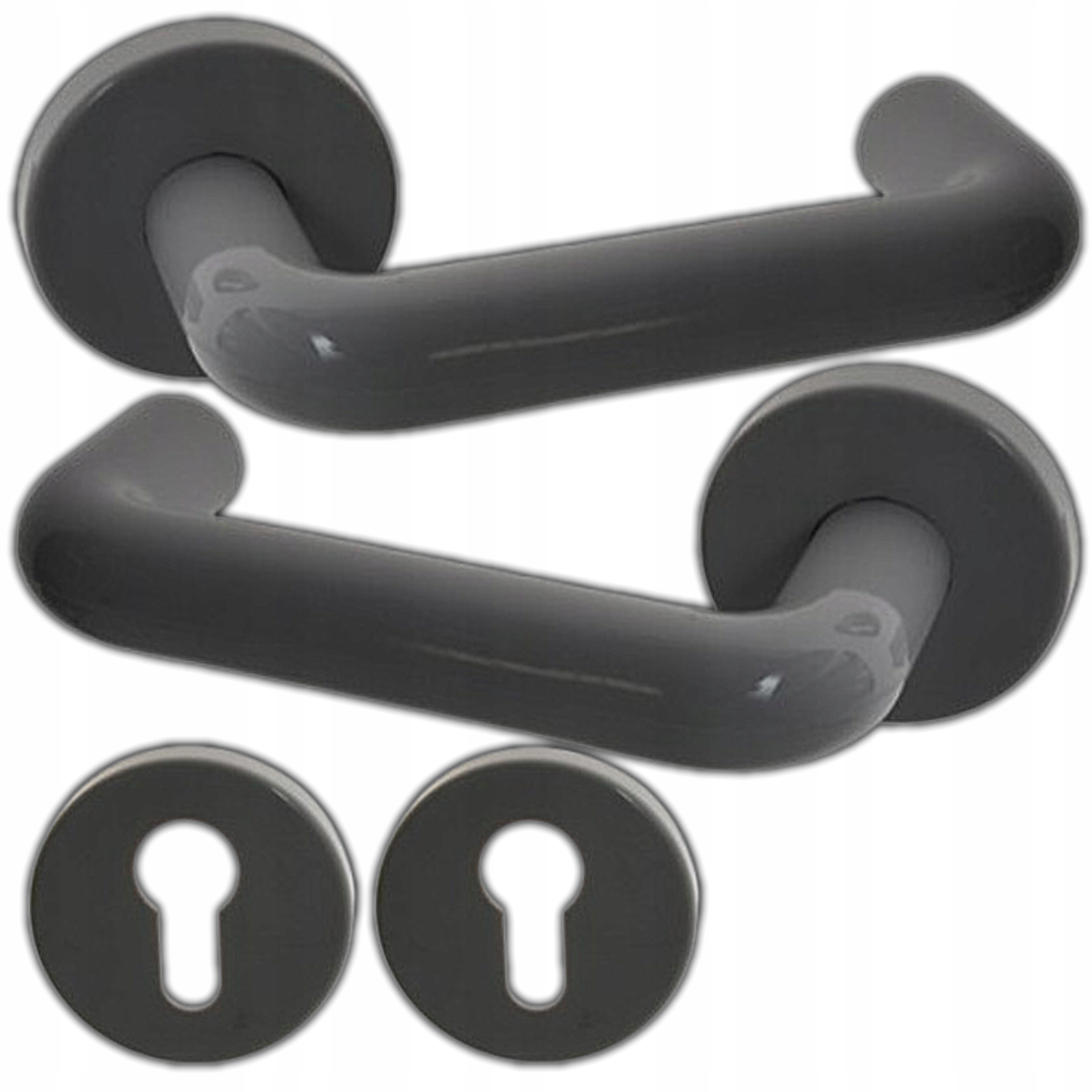 ✳️Klamka drzwiowa bezpieczna do drzwi przeciwpożarowych – 9x9x170 mm, z okrągłą rozetą i szyldem na wkładkę, szary połysk (komplet)
