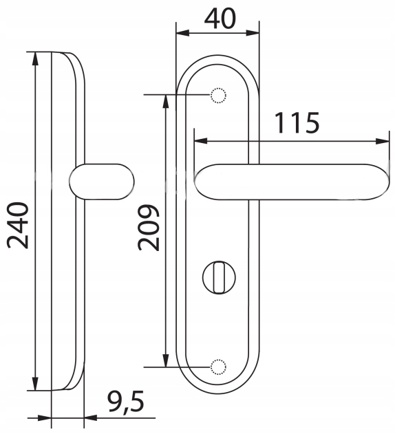 - Komplet zawiera: 2 klamki (wewnętrzną i zewnętrzną), trzpień i elementy montażowe