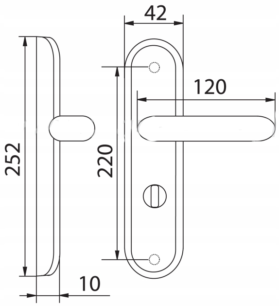 Uniwersalna konstrukcja umożliwia montaż zarówno na drzwiach lewych, jak i prawych, co ułatwia dopasowanie do różnorodnych drzwi. Standardowy rozstaw 72 mm gwarantuje kompatybilność z większością standardowych zamków i blokad WC.