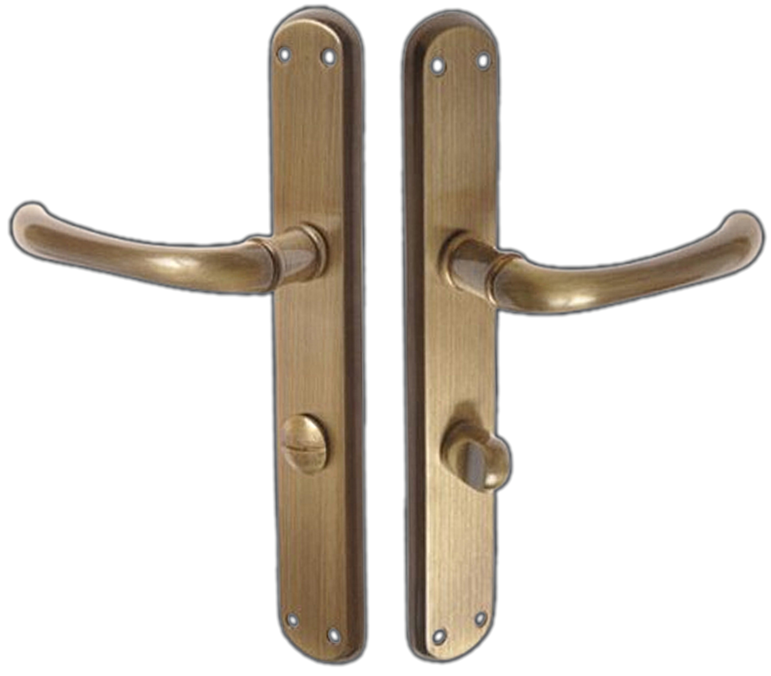 ✳️Klamka drzwiowa GAJA – mosiężny szyld WC, rozstaw 72 mm, patyna, uniwersalna (lewa/prawa)