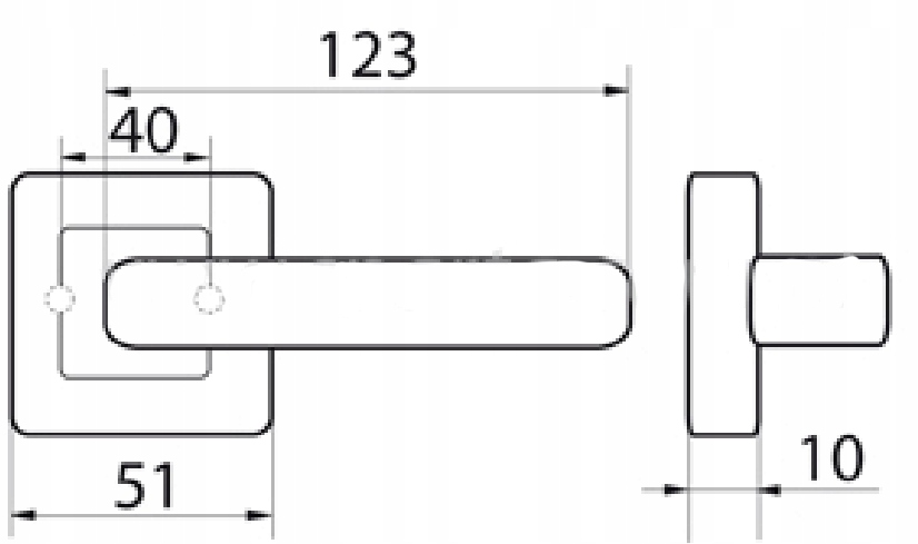 Klamka ABIES osadzona jest na trzpieniu kwadratowym, który blokowany jest za pomocą dwóch wkrętów imbusowych o stożkowym zakończeniu – to rozwiązanie zapewnia większą sztywność i trwałość podczas użytkowania. Możliwość montażu zarówno na śrubach przelotowych, jak i na wkrętach do drewna pozwala dostosować instalację do różnych grubości drzwi.