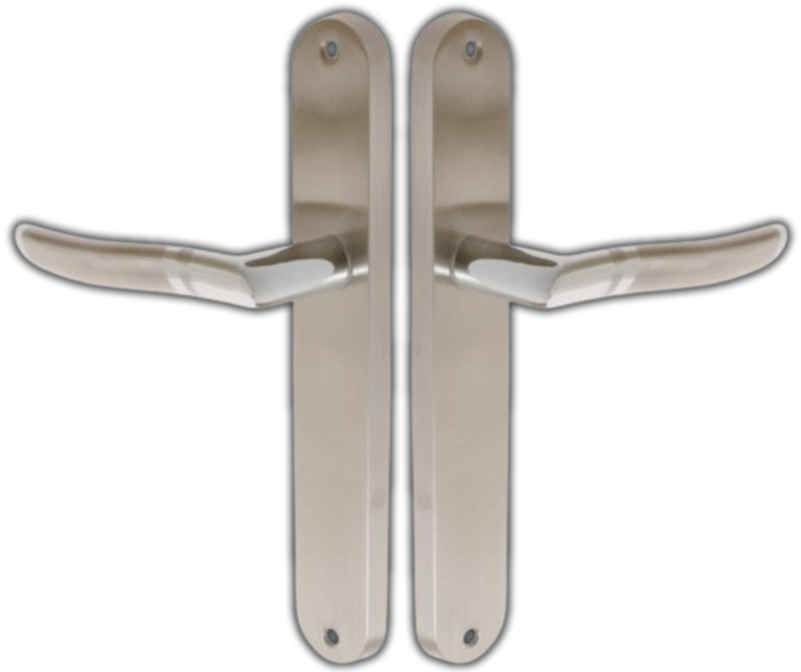 KLAMKA DRZWIOWA DO DRZWI WYTRZYMAŁA CORNUS SZYLD BEZ PRZEBICIA NIKIEL SATYN