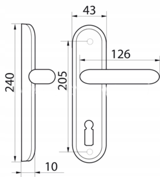 - komplet klamek (zewnętrzna + wewnętrzna)