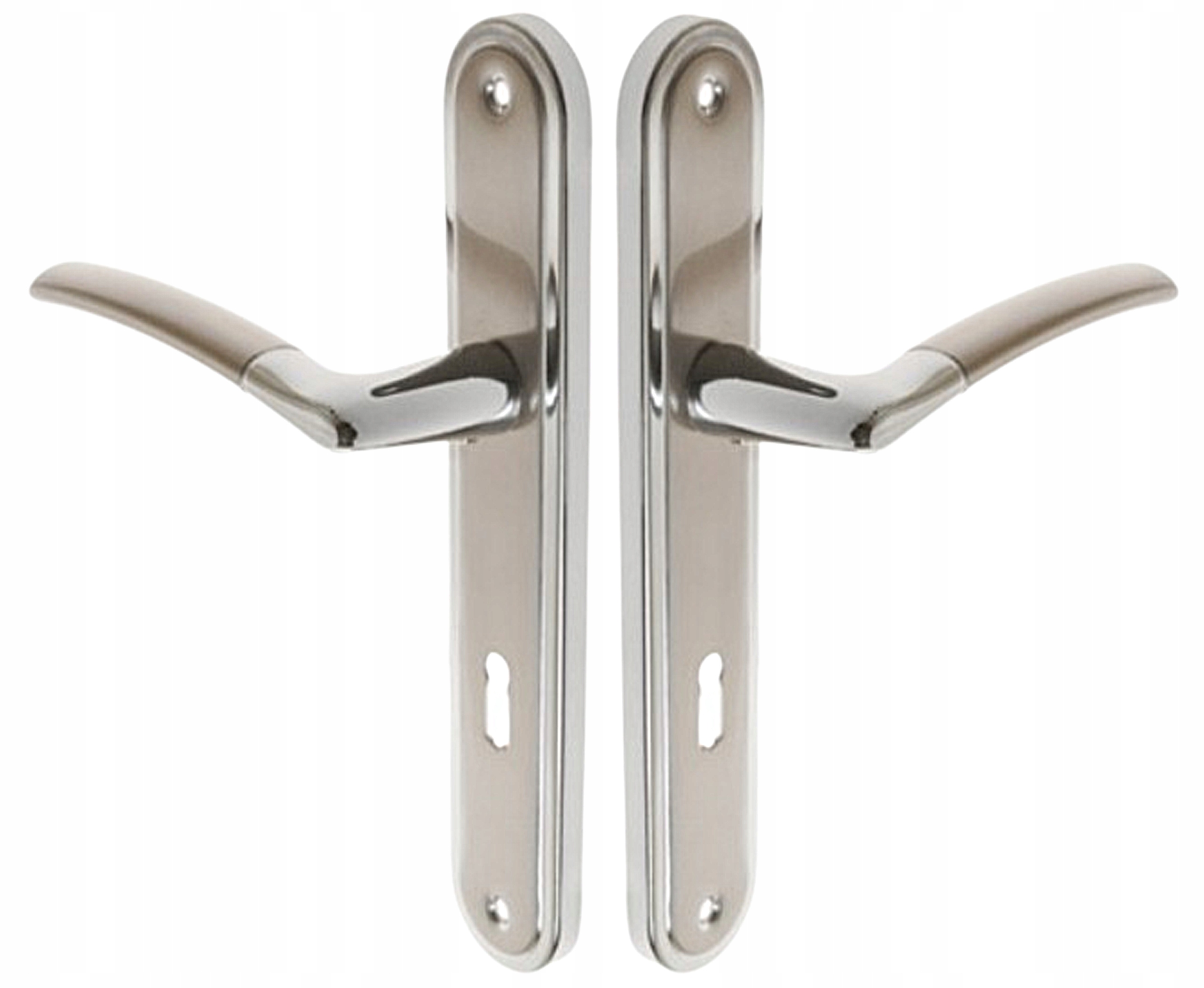 KLAMKA DRZWIOWA DO DRZWI WYTRZYMAŁA LARIX 72 SZYLD NA KLUCZ NIKIEL SATYNA