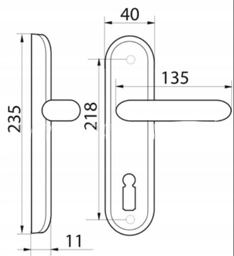 - Klamka na szyldzie długim z otworem na wkładkę (72 mm)