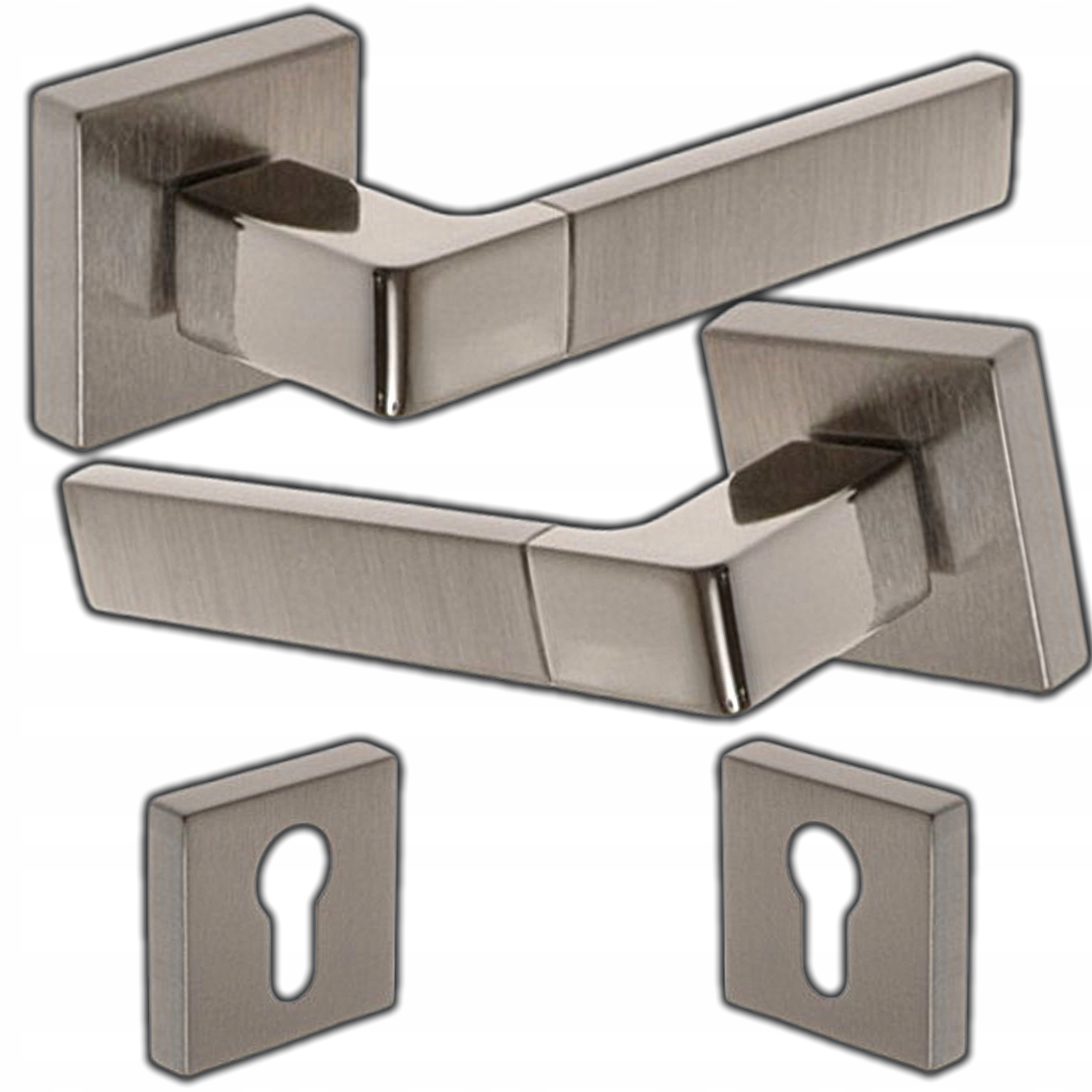 ✳️Klamka drzwiowa WB z tarczką kwadratową | Nikiel satyna | Styl nowoczesny | Made in Italy