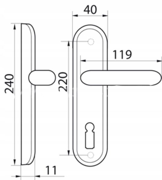 - 2 klamki (wewnętrzna i zewnętrzna)