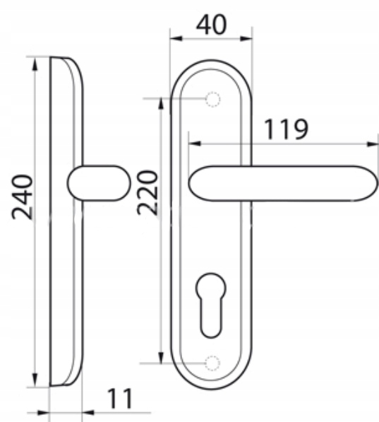 - 2 klamki (zewnętrzna i wewnętrzna)