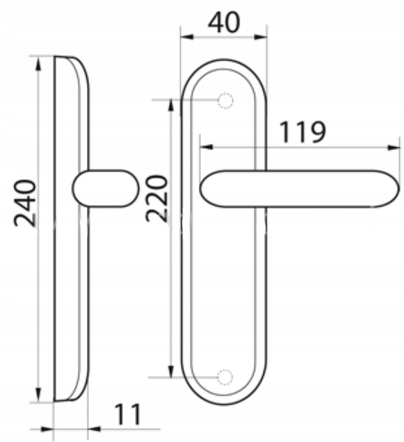 - 2 klamki (zewnętrzna i wewnętrzna)