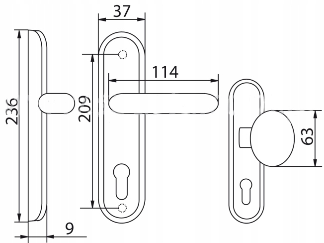 - Rozstaw 90 mm – do zamków na wkładkę