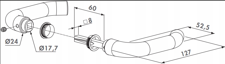 ✳️Komplet klamek aluminiowych Locinox 3006D, trzpień 8 mm