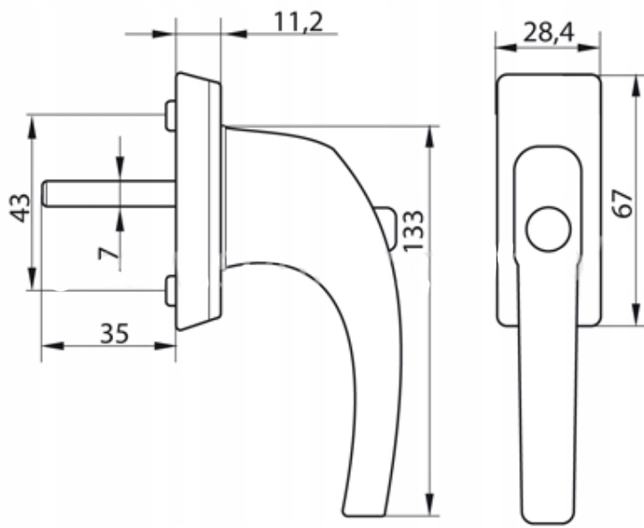 ✳️Klamka okienna z przyciskiem – trzpień 32 mm, magnezowa