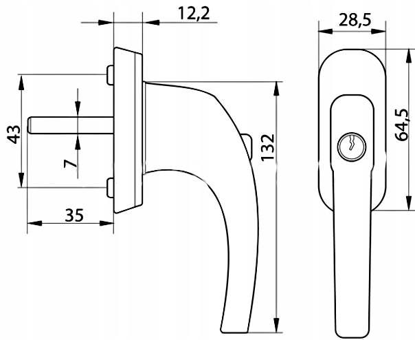 ✳️Klamka okienna z kluczykiem – trzpień 35 mm, blokada w pozycji zamkniętej