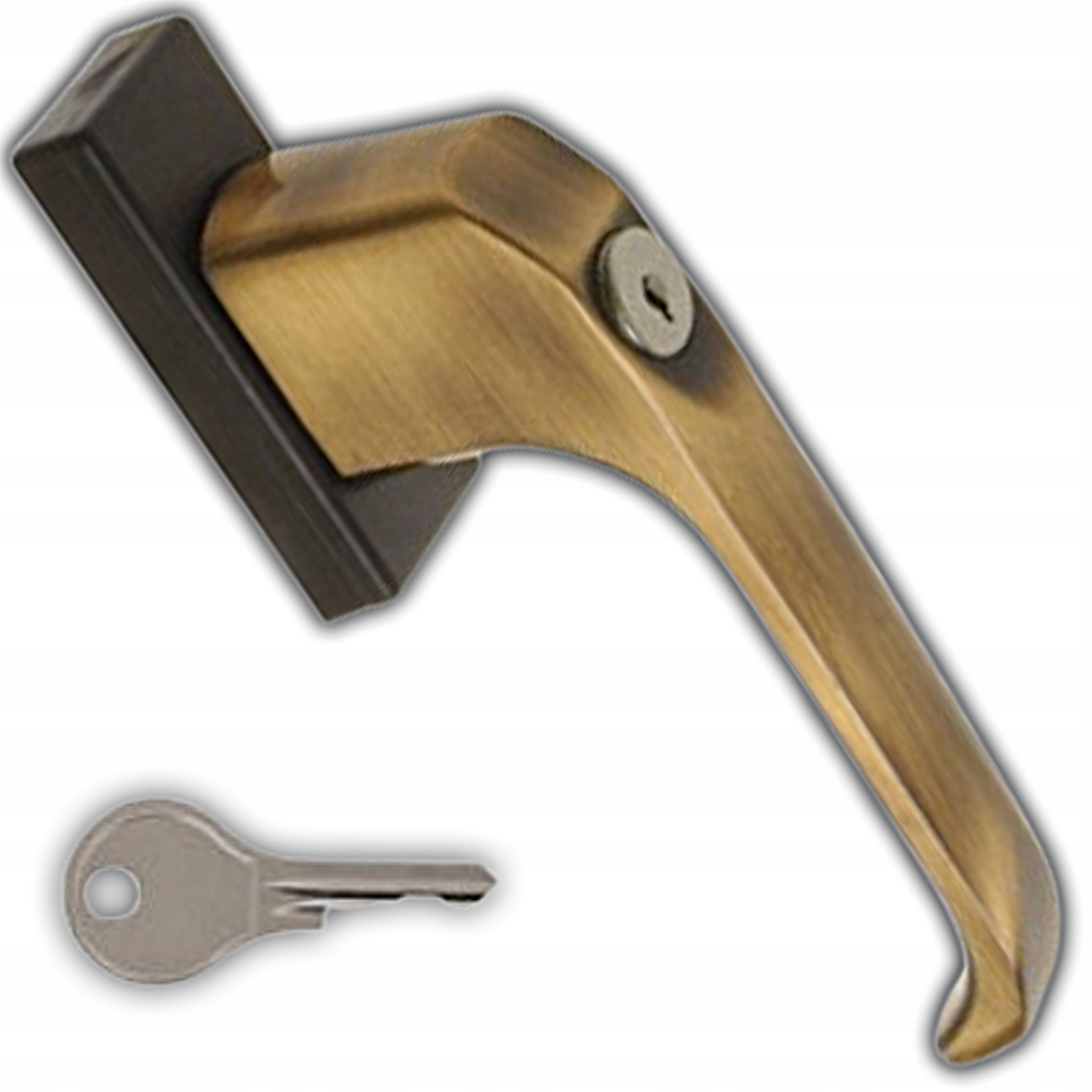 Stylowa klamka okienna z zamkiem na klucz w eleganckim wykończeniu patyna / mosiądz. Doskonały wybór dla osób ceniących klasyczny wygląd i wysoką funkcjonalność. Idealna do tradycyjnych i rustykalnych wnętrz, a także do obiektów wymagających zwiększonego poziomu bezpieczeństwa.