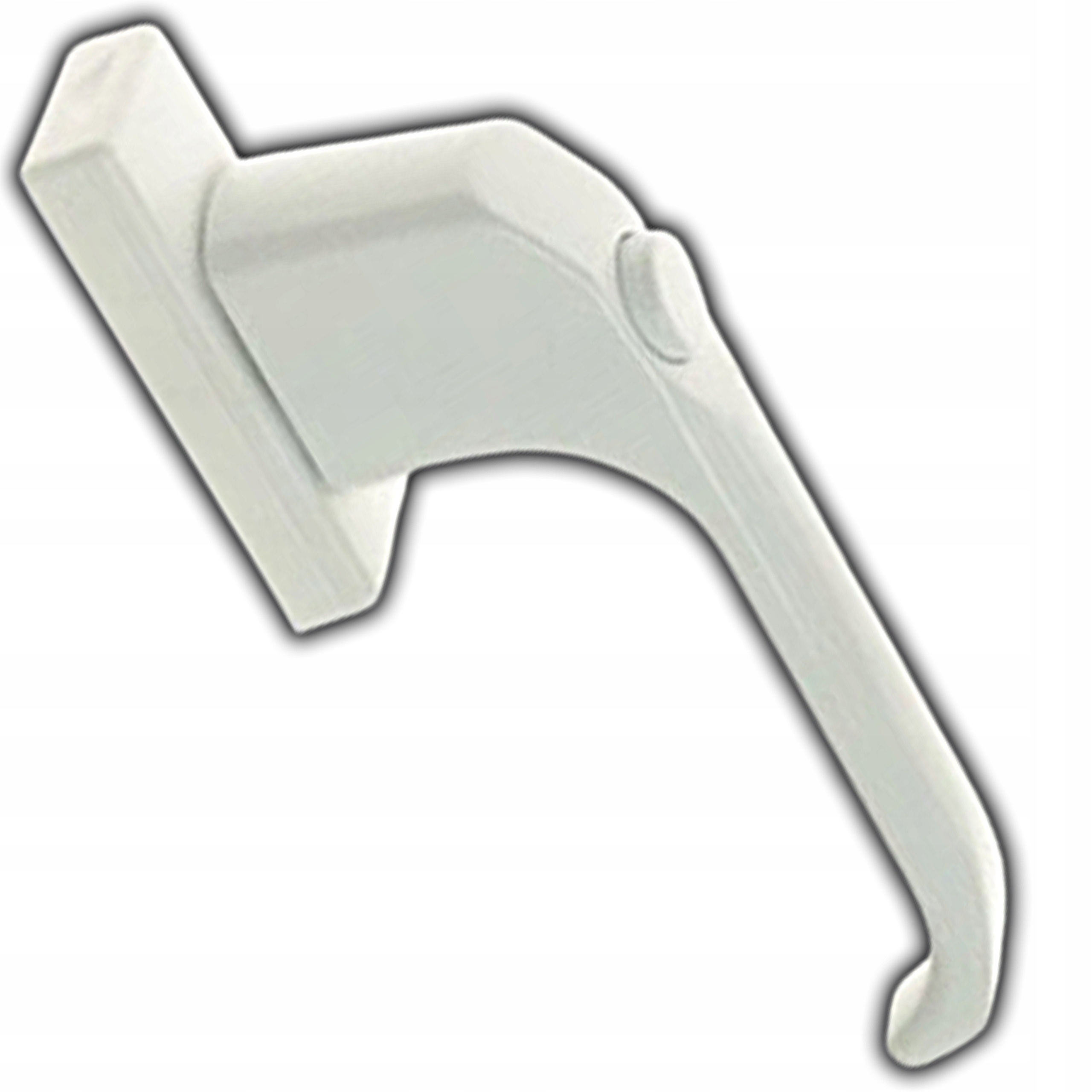 KLAMKA OKIENNA DO OKNA ZNALOWA Z PRZYCISKIEM TRZPIEŃ L-35MM BIAŁA