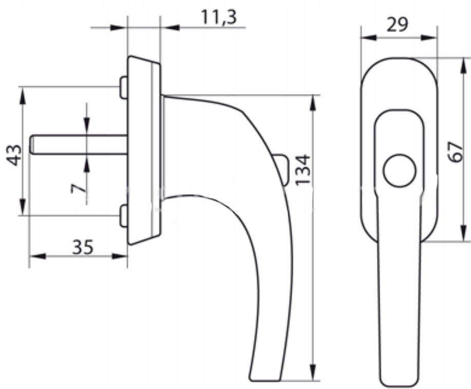 ✳️Klamka okienna z przyciskiem – trzpień 35 mm, stop ZnAl