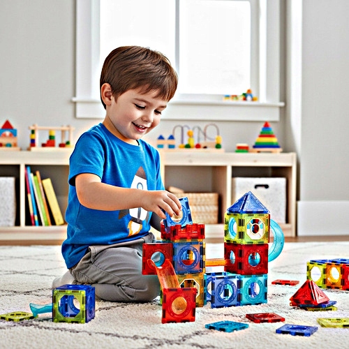 Zabawa z tym zestawem rozwija wyobraźnię przestrzenną, logiczne myślenie i zdolności manualne, a także uczy podstaw fizyki i konstrukcji.