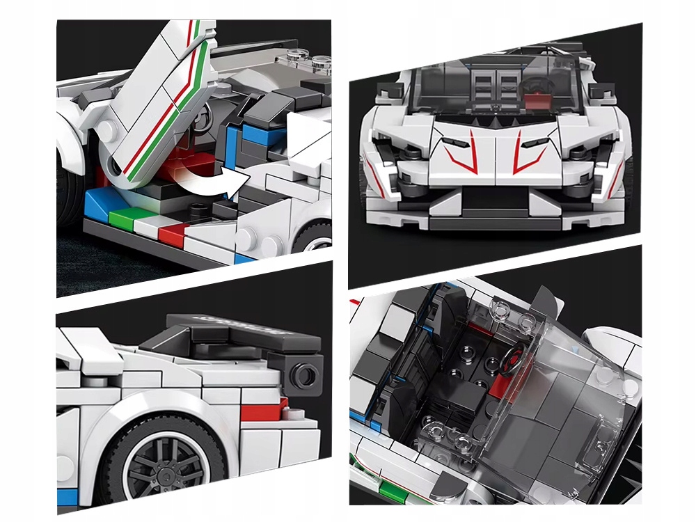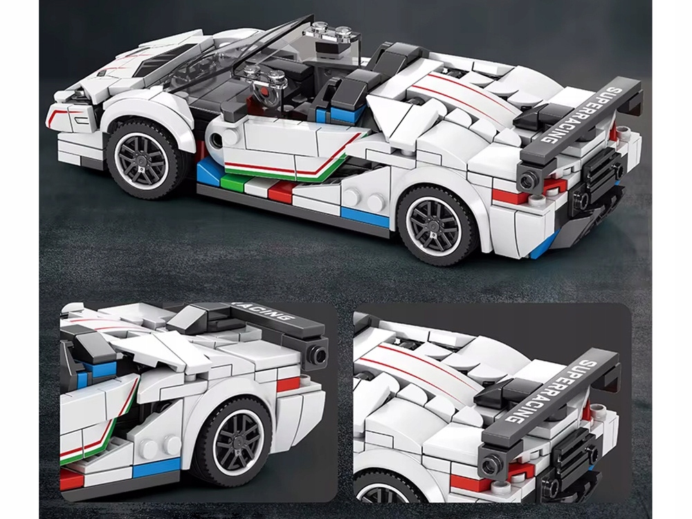 Białe Supersportowe Auto ze spojlerem to zestaw, który zachwyci miłośników szybkich, nowoczesnych maszyn. Łączy elegancję, moc i precyzyjny design, tworząc model, który stanie się prawdziwą ozdobą każdej kolekcji i powodem do dumy dla każdego konstruktora.