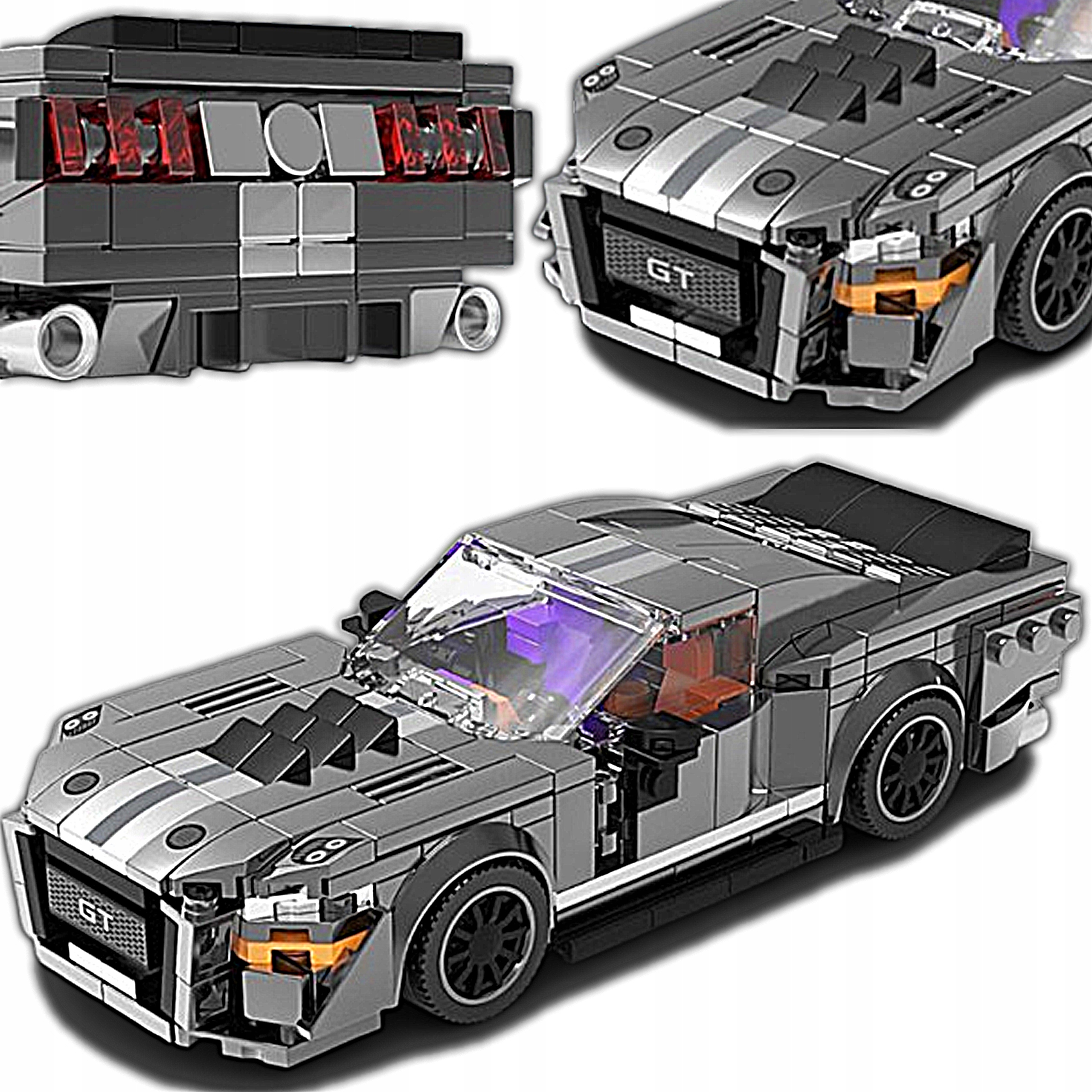 ✳️Klocki techniczne – Szare auto GT z podwójnymi paskami
