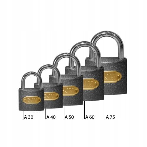 Kłódka GJM typ A żeliwna - 3 klucze w komplecie z korpusem w kolorze szarym.