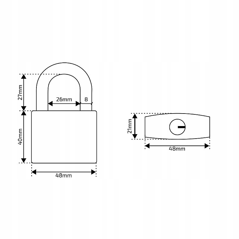 - Trwały korpus żeliwny, hartowany pałąk Ø 8 mm