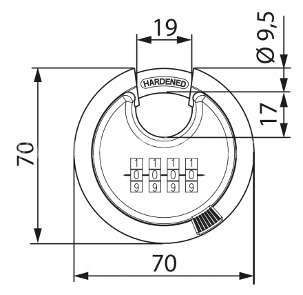 KŁÓDKA JARZMOWA PAŁĄKOWA SZYFROWA DYSKOWA OPEL 70 CZARNA KOD SZYFR 4 CYFRY