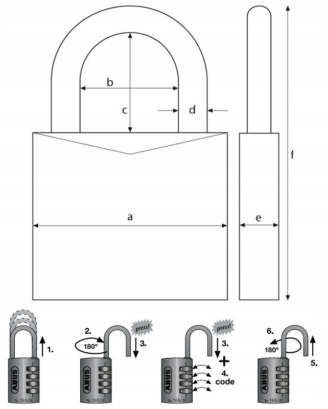 - Jarzmo sprężynowane – ułatwia otwieranie i zmianę kombinacji kodu