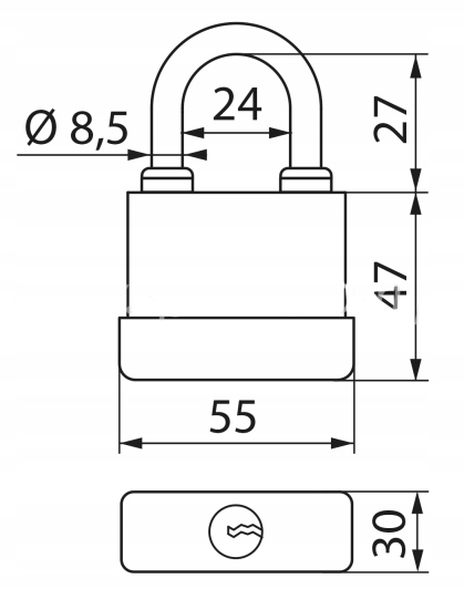 - Mechanizm: mosiężny bębenek z zabezpieczeniem antywłamaniowym
