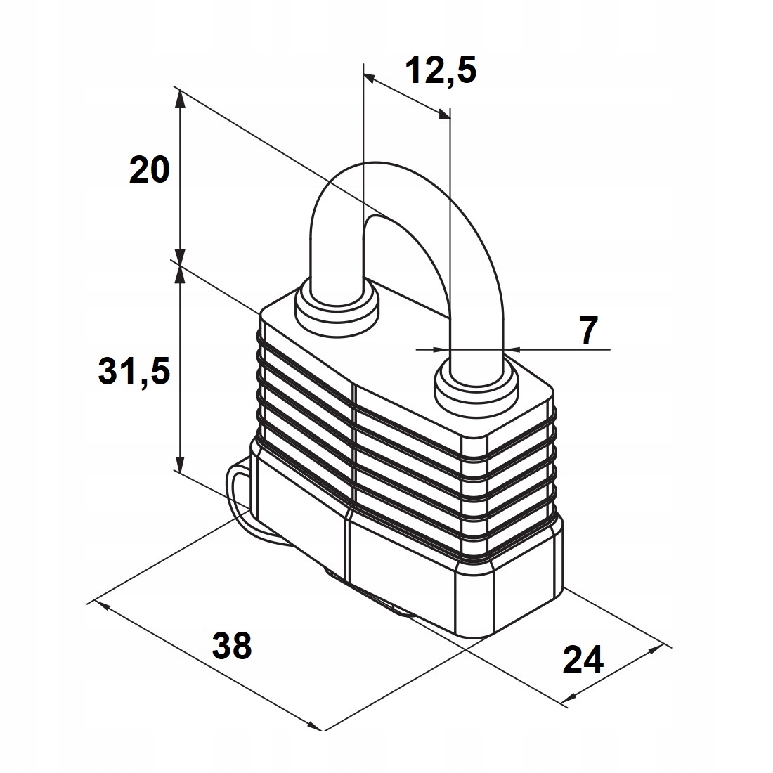 Korpus wykonany z utwardzanej stali zapewnia trwałość i odporność na uszkodzenia mechaniczne, a hartowany pałąk skutecznie opiera się próbom przecięcia. Kłódka posiada obustronną blokadę zatrzaskową, co dodatkowo zwiększa poziom zabezpieczenia.