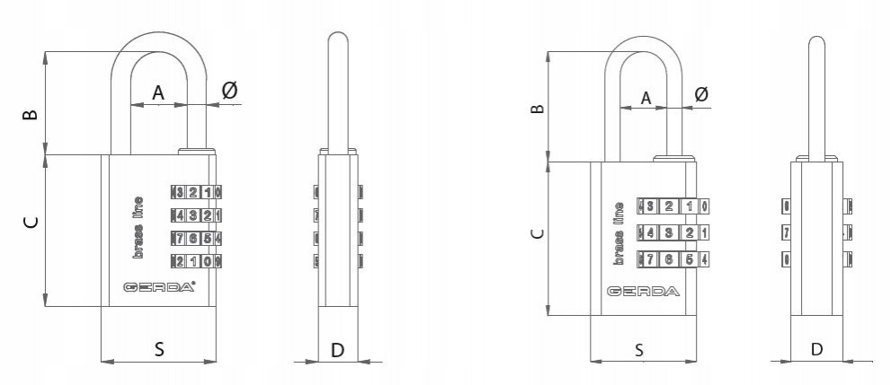 Kłódka mosiężna szyfrowa, korpus wykonany z litego mosiądzu. Pałąk ze stali utwardzanej. Zamknięcie szyfrowe, możliwość ustawiania indywidualnego kodu szyfrowego