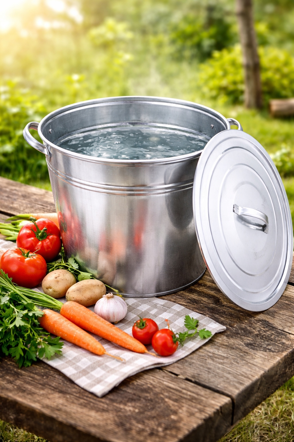 Pojemność 15 l pozwala przygotować większą ilość materiału jednorazowo, co skraca czas pracy i ogranicza zużycie energii. Dwa solidne uchwyty ułatwiają przenoszenie, a pokrywa przyspiesza doprowadzanie do wrzenia. Kocioł posiada dno zakończone wąskim rantem (ok. 5 mm), dlatego najlepiej sprawdza się na palnikach gazowych, rusztach lub paleniskach z odpowiednim podparciem. To praktyczny garnek ocynkowany do przetworów, wyparzania słoików, przygotowania paszy czy zagotowania większej ilości wody.
