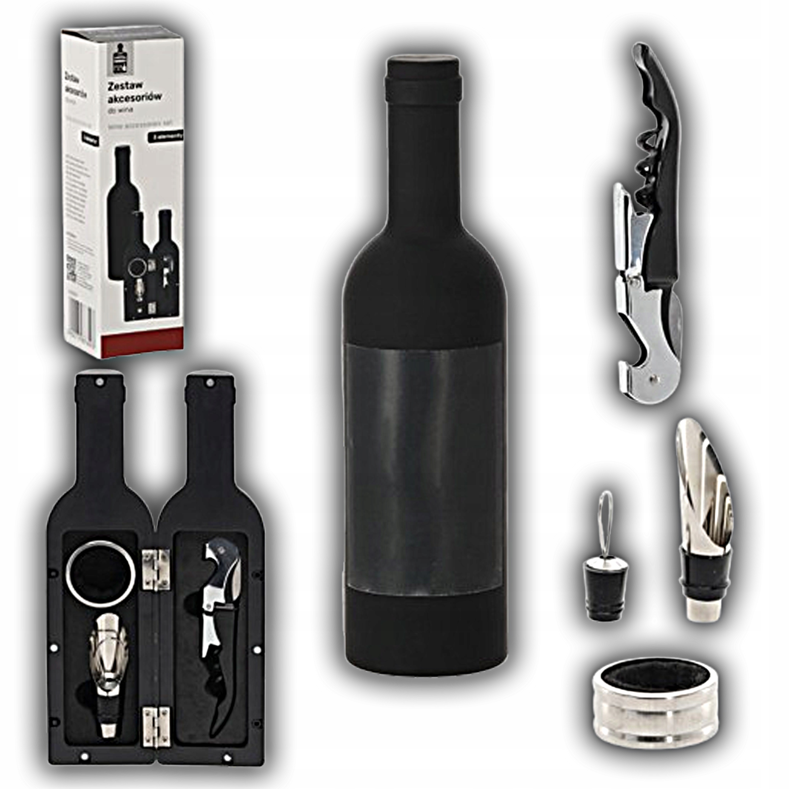 KOMPLET 3 AKCESORIÓW DO WINA W FUTERALE W KSZTAŁCIE BUTELKI ZESTAW DO WINA