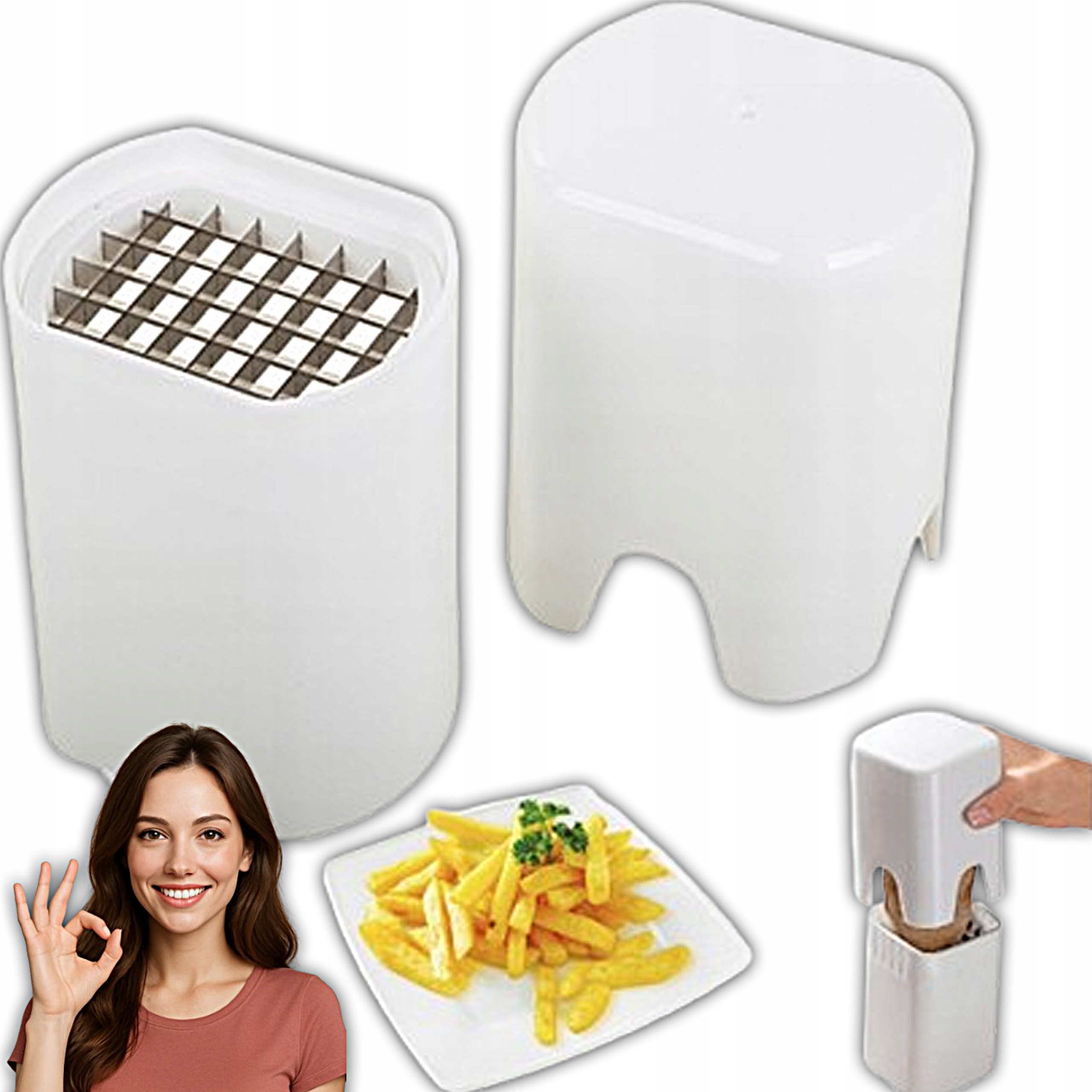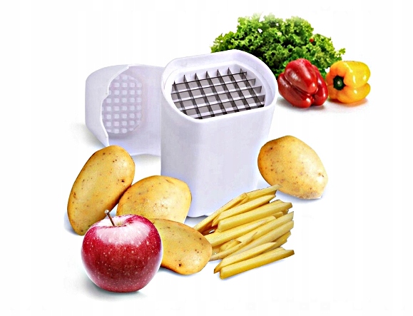 Krajalnica do frytek to lekkie, poręczne i skuteczne narzędzie kuchenne, które pozwala szybko i bezpiecznie przygotować zdrowe frytki oraz pokroić warzywa i owoce w równą kostkę lub paski.