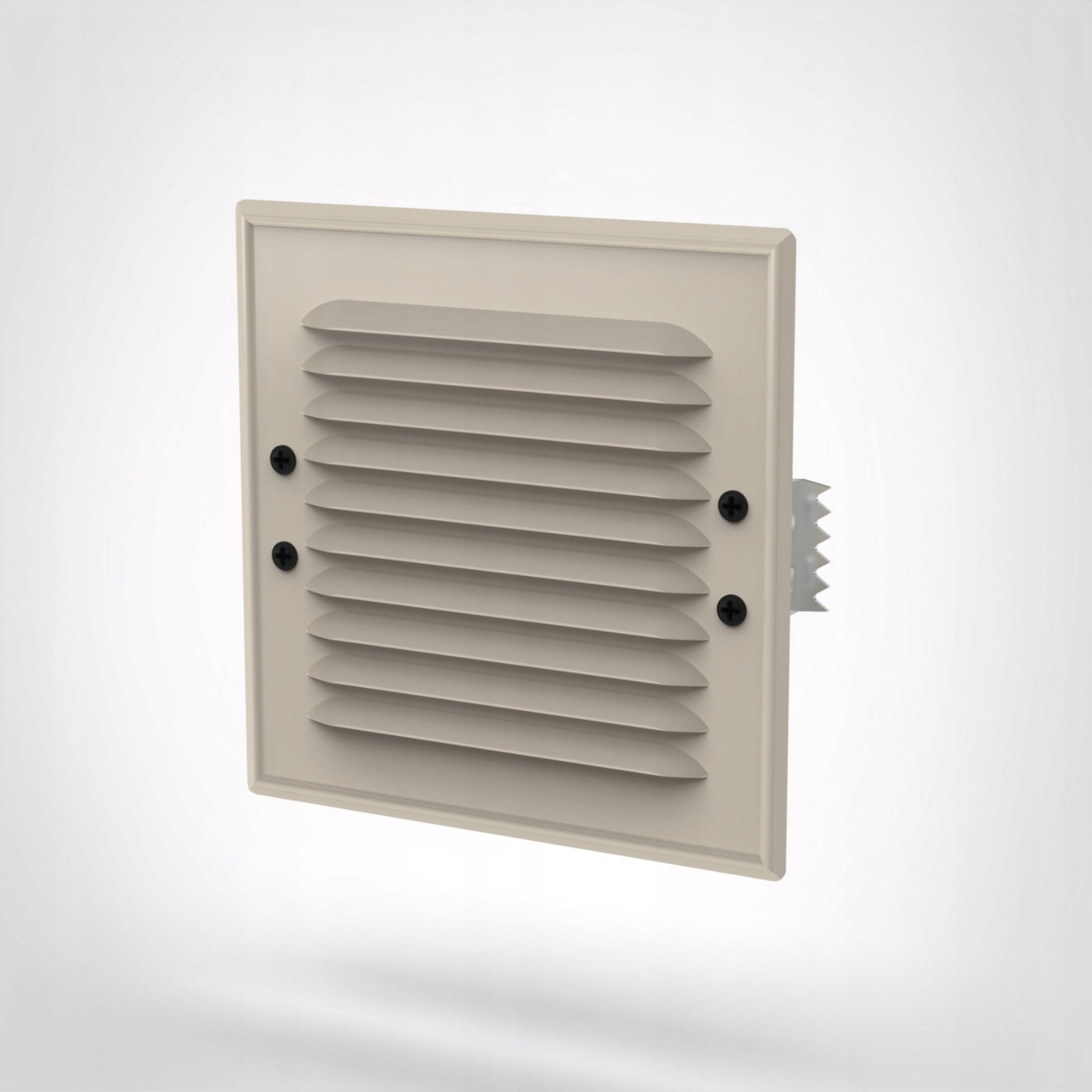 Metalowa płaska kratka ze skośnymi żeberkami. Wykonana z blachy dachowej w wersji kolor, bądź ze stali nierdzewnej. Powierzchnia kratki zabezpieczona folią. Wersja z łapkami rozporowymi. Wygodny sposób montażu w otworach wentylacyjnych bez konieczności kołkowania lub klejenia. Zastosowanie typowo zewnętrzne, ściany, kominy. Skośne żeberka uniemożliwiają wpadanie deszczu czy śniegu. Kratka posiada siatkę