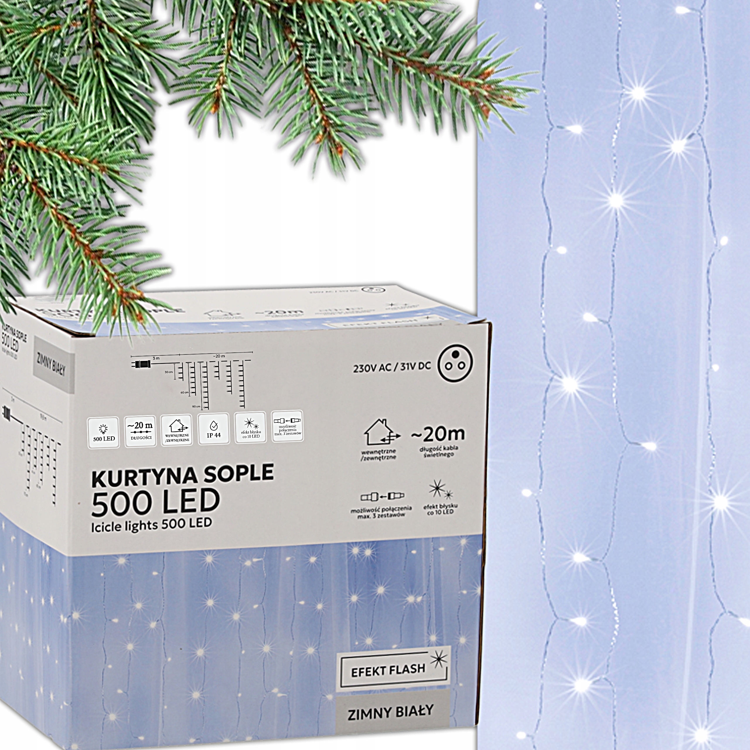 Wybierz Lampki LED Sople 500L – Zimny Biały + Flash i spraw, by Twoje dekoracje wyróżniały się wśród innych!